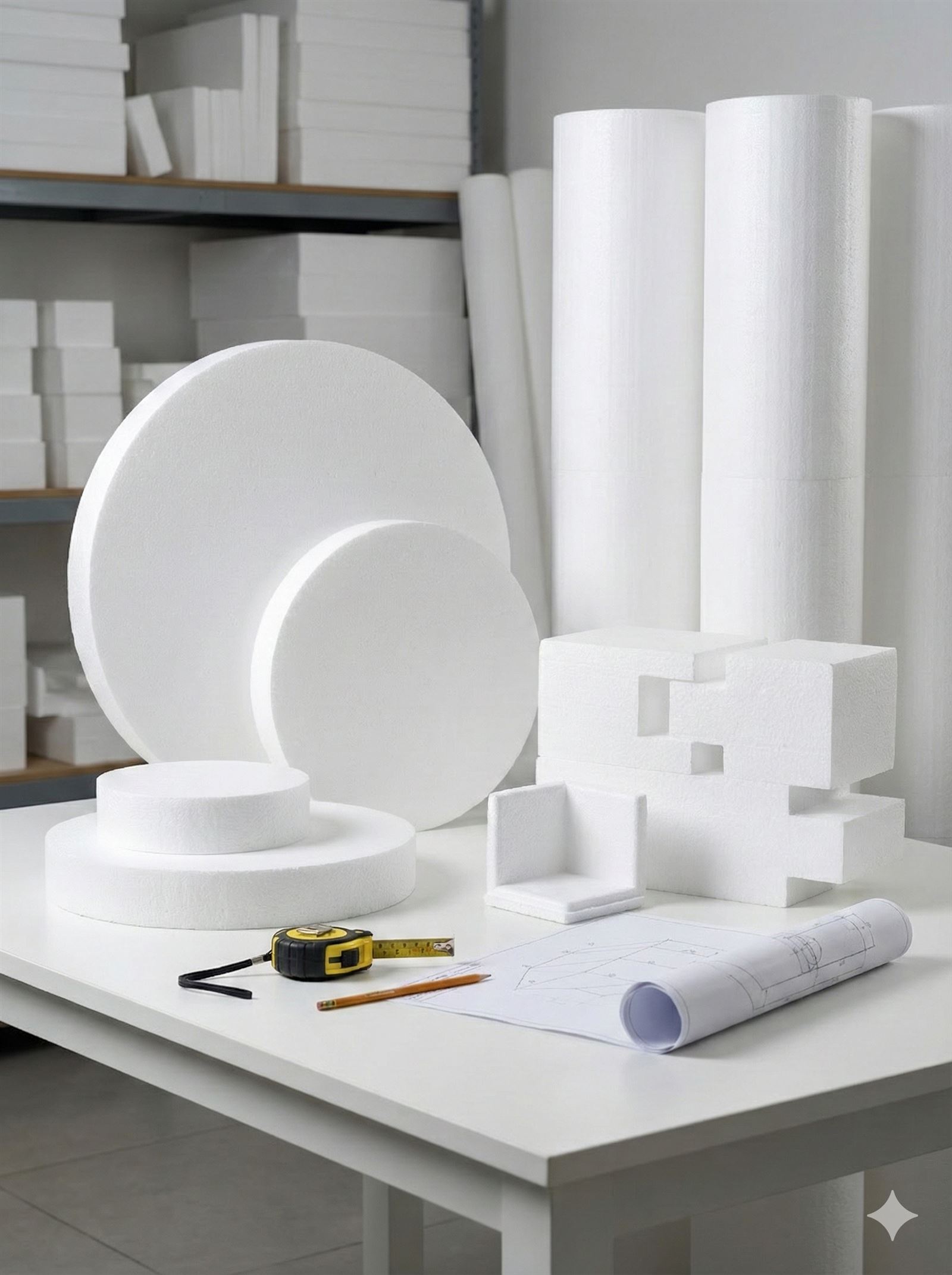 Cortes especiais em EPS para construção, embalagens industriais e cenografia.