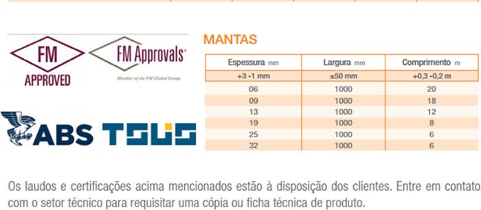 | Espessura (mm) | Largura (mm) | Comprimento (m) |