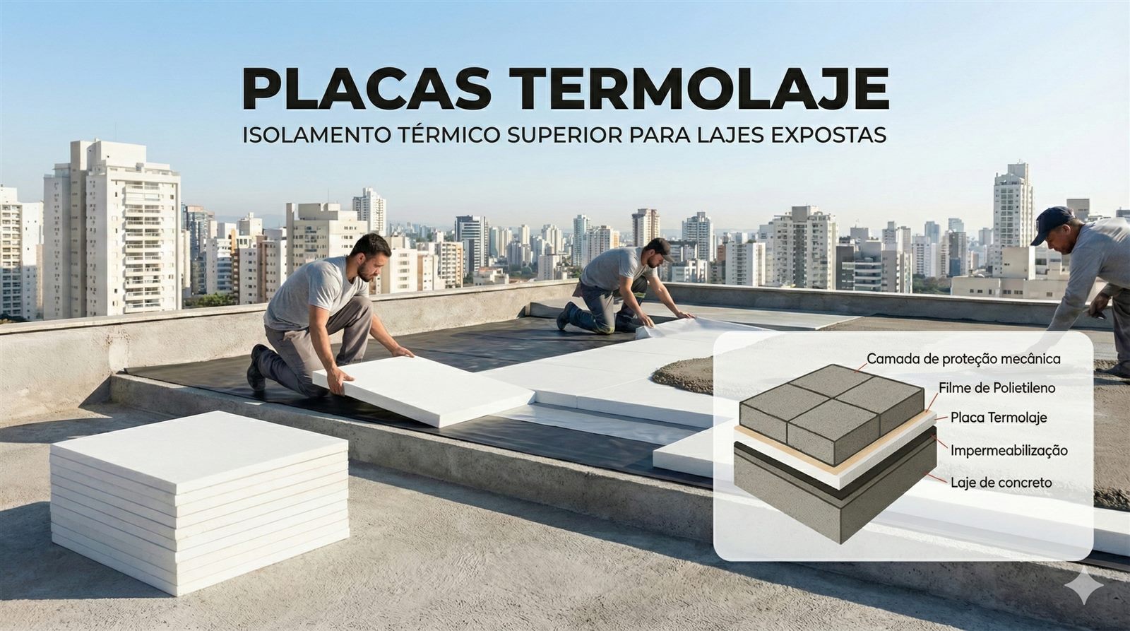 Placas de EPS de alta densidade para barreira termica sobre impermeabilizacoes em lajes e coberturas.